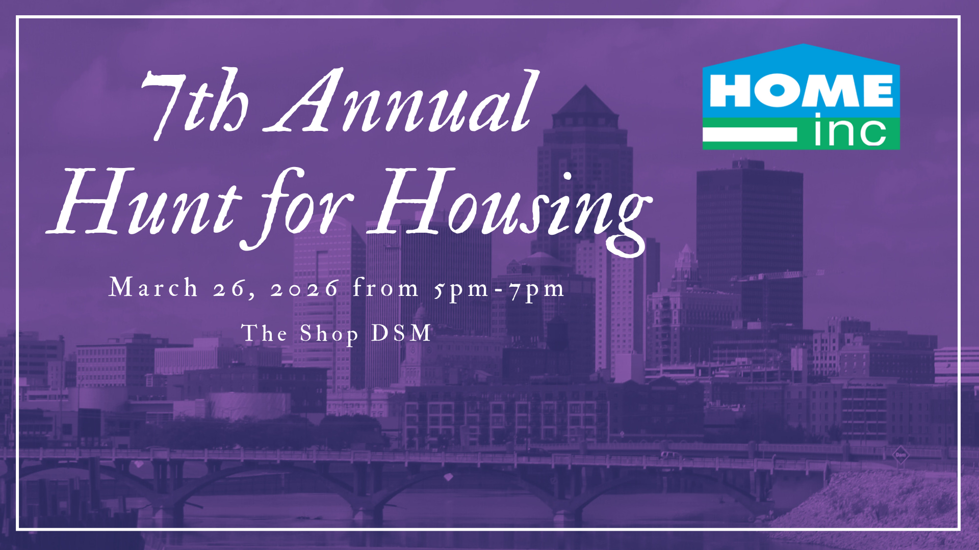 Hunt for Housing is HOME, Inc.'s signature event! Join us on Thursday, March 26, 2026 for the 7th annual Hunt for Housing! This is a fundraiser and celebration of the work we have done in the last year to advance affordable housing, combat rising inaccessibility to housing and create housing stability in the Greater Des Moines region.