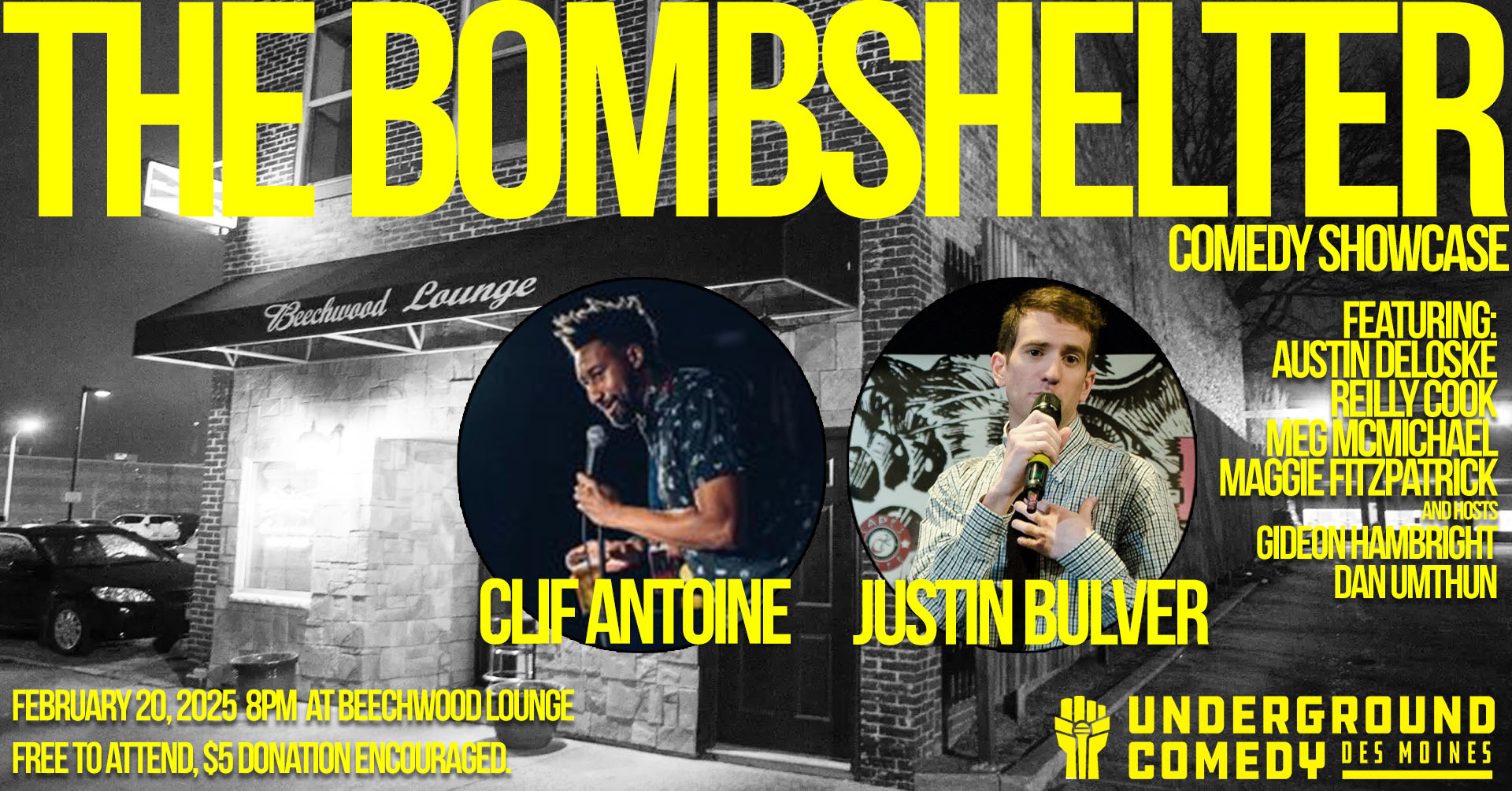A high caliber comedy show of some of the best comics in Des Moines or anywhere else: the Bomb Shelter at the Beechwood is a Des Moines legacy comedy show!
